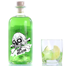 Hab ich neulich im Finki um die Ecke gesehen und war sofort von dem netten Schädel begeistert. Das muss natürlich mit der Nennung der Gestalterin, hier auf Kopfblog, gewürdigt werden: Jaqueline Iven von Querflieger Design. Coole Rübe und auch der Gesamteindruck mit der Flasche, dem grünen Zeug und dem lustigen Stöpsel.